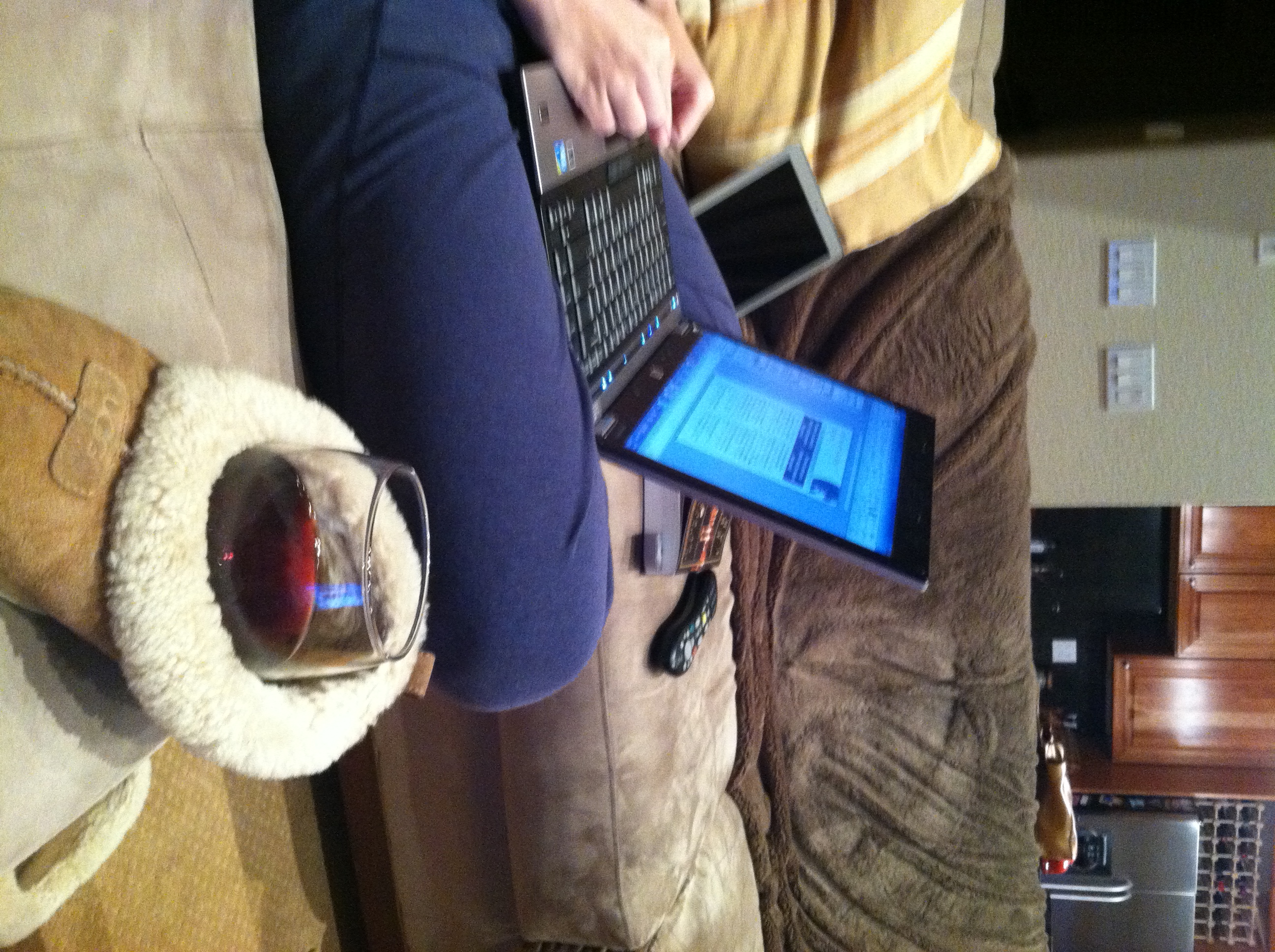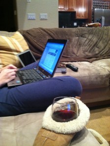 Unsolicited work tip: if you find yourself needing to work late into the evening and want to do so on your couch perhaps with a beverage in hand, but cannot really do that because of the shape of your couch not lending itself to end tables, may I suggest the following life hack?